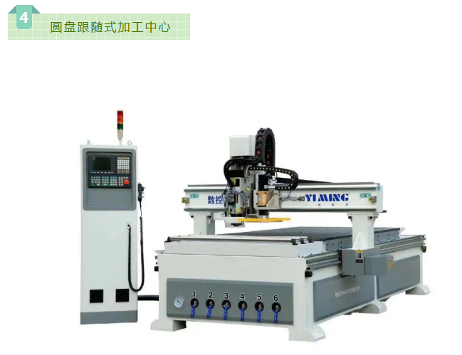 跟隨式圓盤換刀中心,可配套自動上下料平臺,可加工門板,柜體。