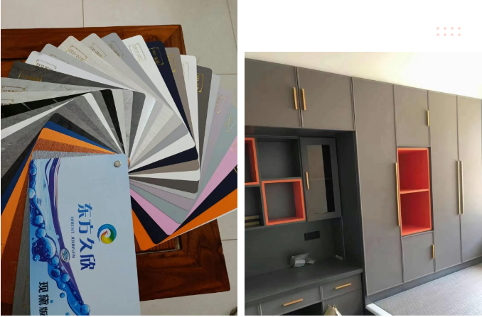 目前我公司主推金屬、莫蘭迪膚感系列,流砂、荔枝紋膚感系列等中高端PVC膜,還引進(jìn)了黏性強(qiáng)、無顆粒的吸塑膠水——東方久欣膠水。
