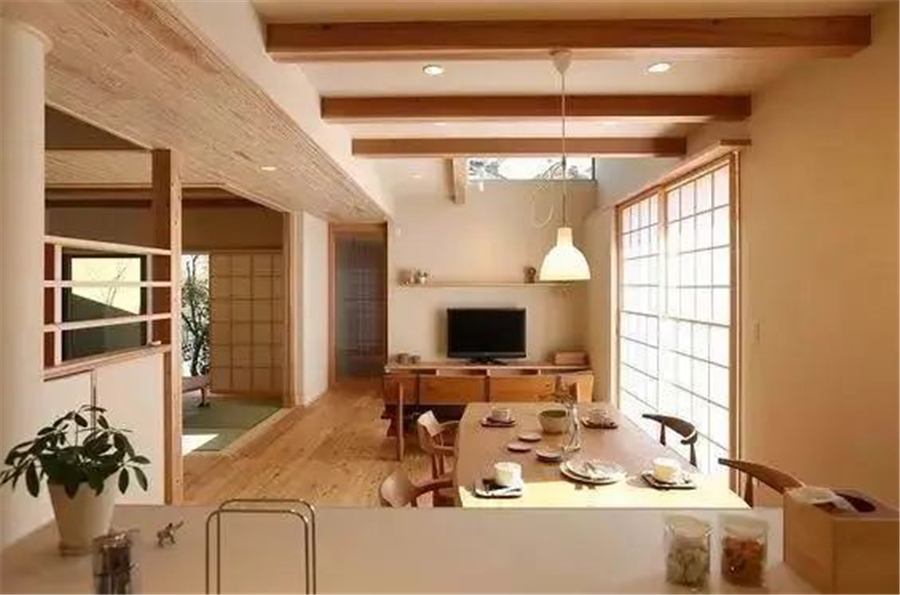 以木屏風(fēng)、木拉門、活動木墻、木質(zhì)格柵甚至地臺等取代傳統(tǒng)的磚墻隔斷,可以達(dá)到延伸、擴(kuò)大空間的效果,整體居住環(huán)境看起來會更加通透。