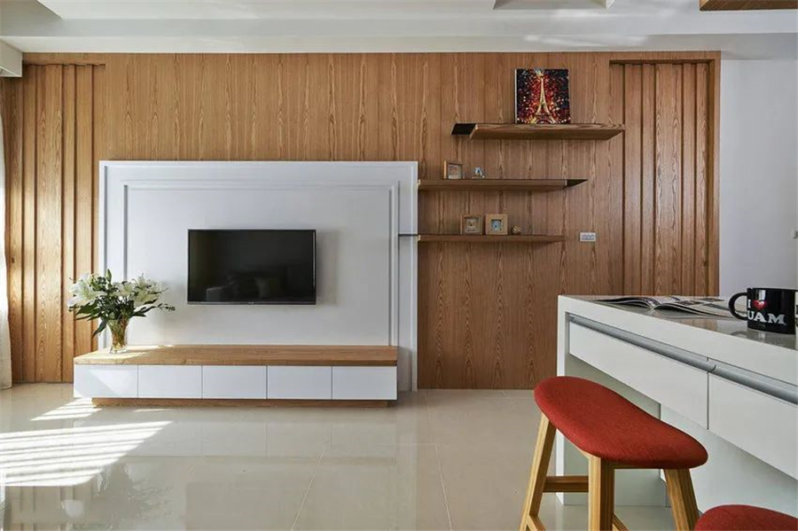 除了天花板,木材還可以用于立面設(shè)計(jì)中,比如木質(zhì)墻壁、木質(zhì)門窗、木質(zhì)柜墻等。通過運(yùn)用天然材質(zhì),讓家充滿自然氣息。